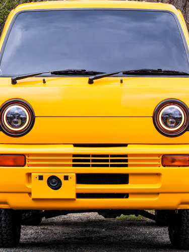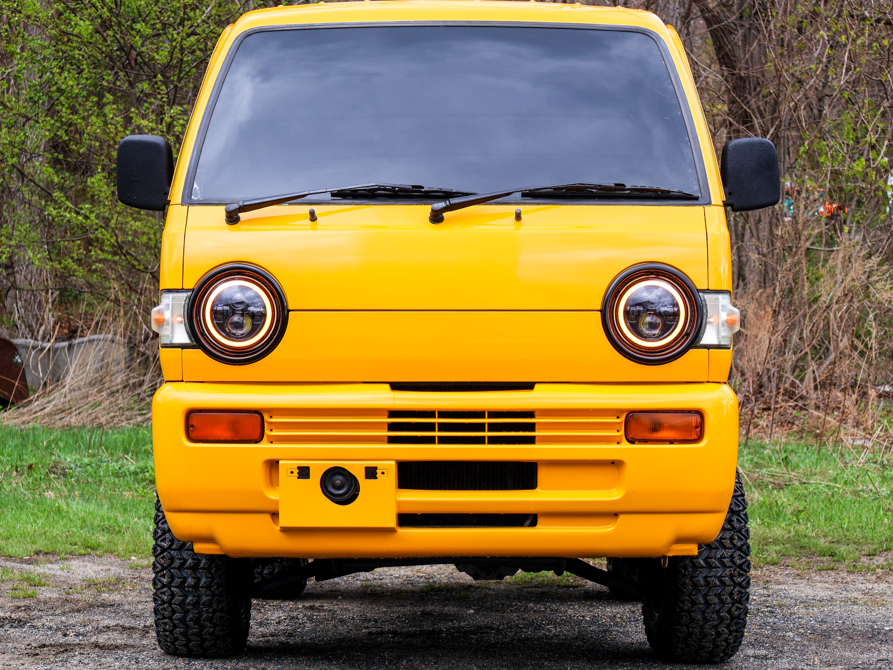 Classic round headlight layout upgraded with custom LED daytime running lights.