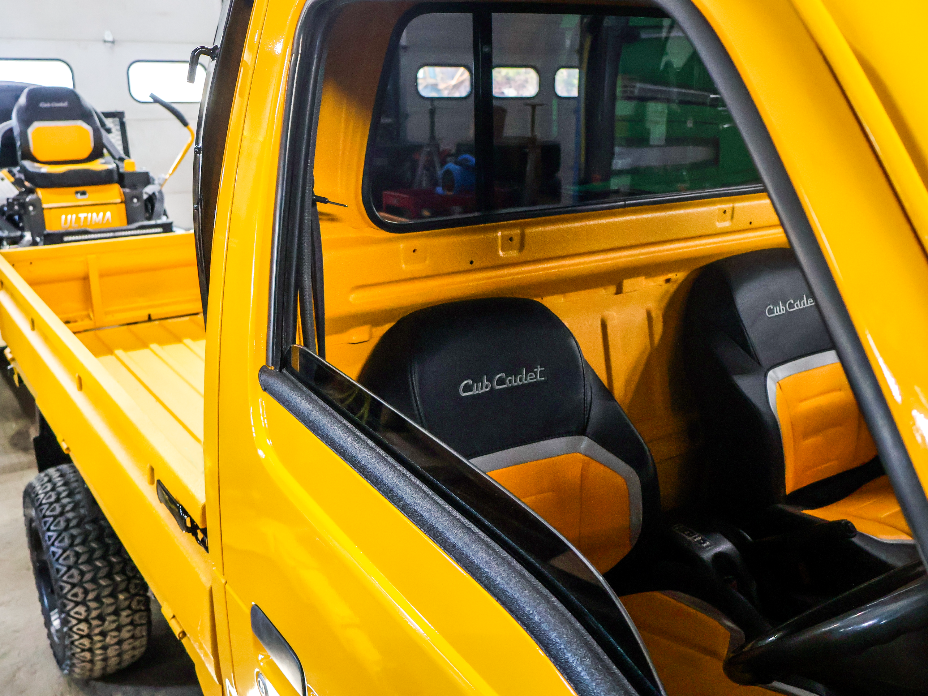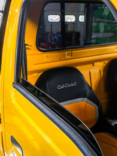 Custom Cub Cadet seats give the cabin a more distinctive utility-themed interior.